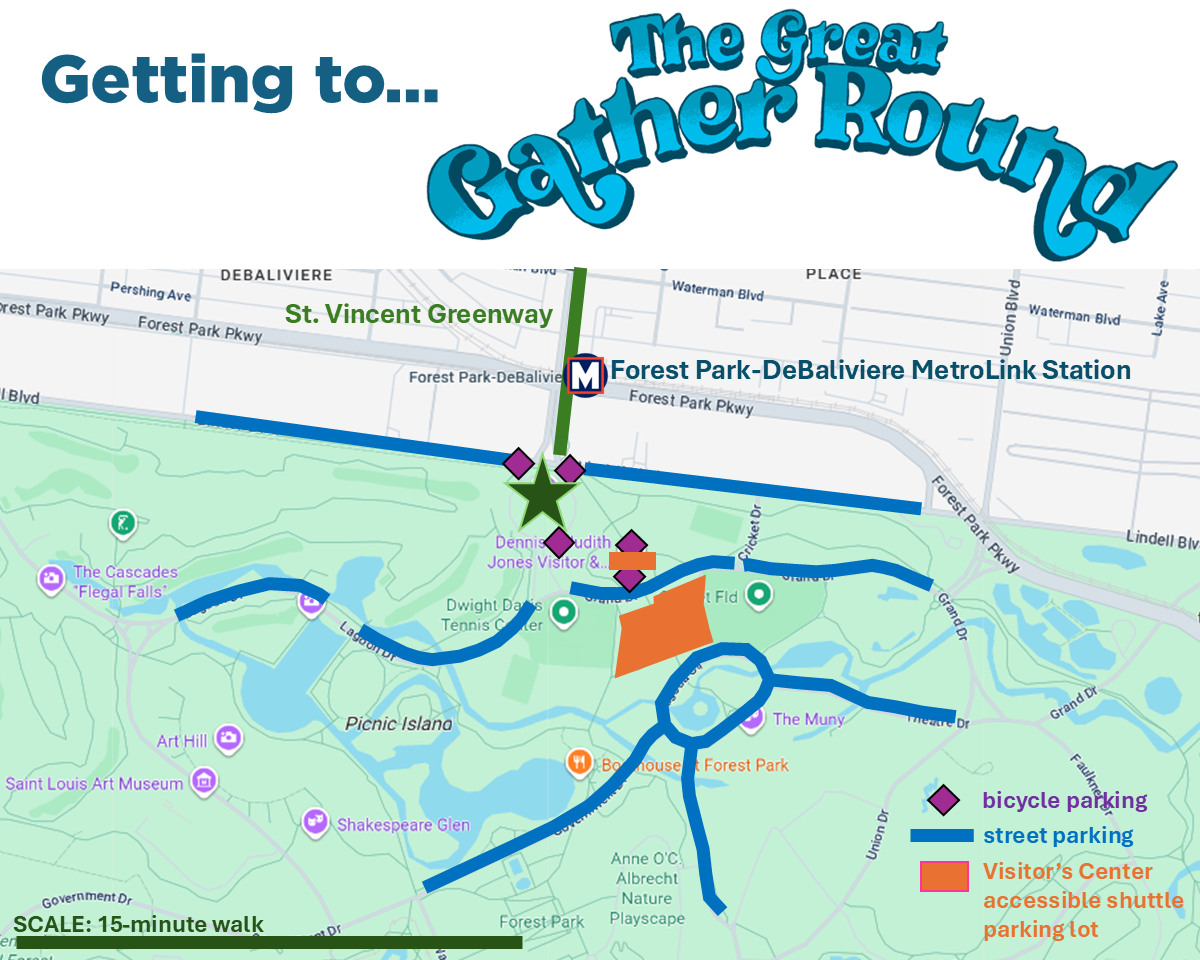 - Take transit! Forest Park/DeBaliviere MetroLink Station or #90 MetroBus.