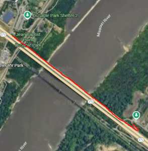 The trailhead in Riverwoods Park is located near the intersection of Earth City Parkway (Highway 141) and St. Charles Rock Road.
