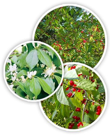- Bush Honeysuckle “leafs out” early in the spring and remains late into fall, giving it a competitive advantage over native plants